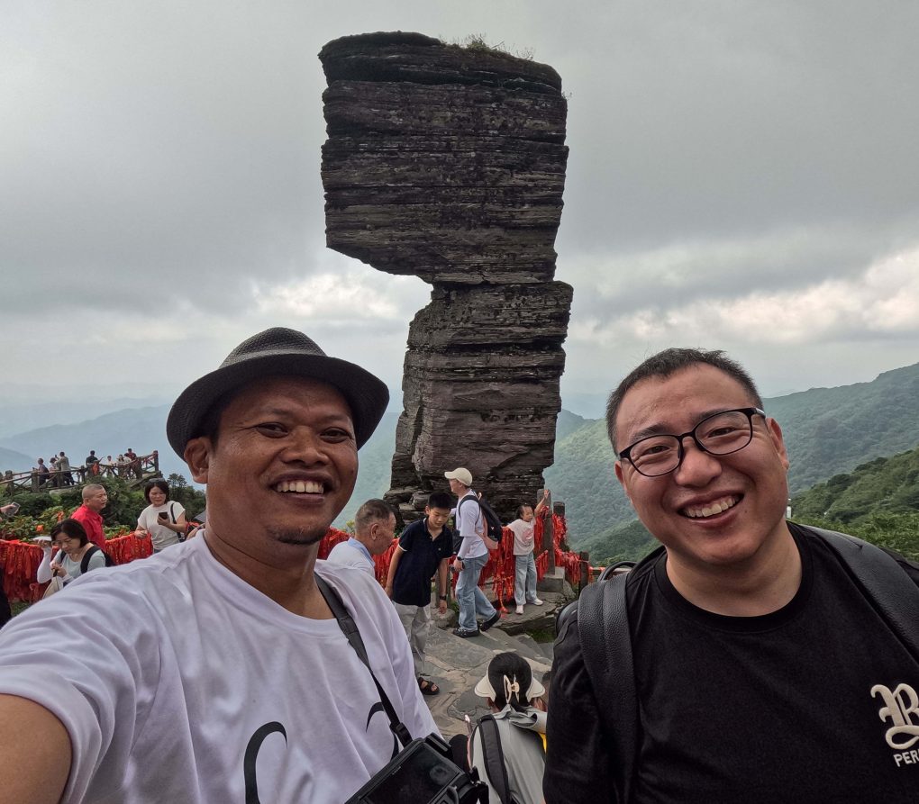 with Kefeng infront of legendary mushroom rock Fanjing mt.
