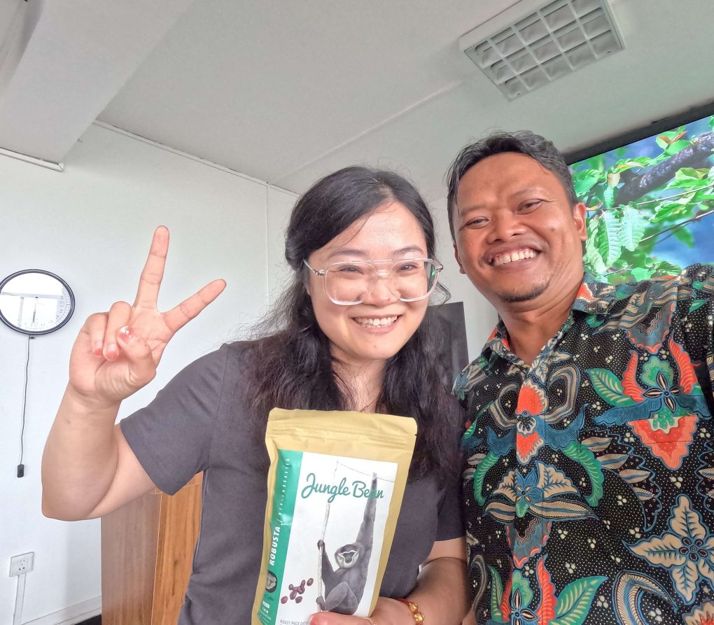 In this vast green area, nature remains a teacher and protector. I received an invitation to one of the province’s science development centers, the Guiyang Academy of Science. This opportunity arose because Kefeng Niu, who works at this institution, presented at the Guiyang Academy of Science. The opportunity to introduce the Javan Gibbon and its conservation project in Pekalongan, Central Java. Kefeng had arranged everything, and after lunch we headed to the Guiyang Academy of Science. There we were awaited by Professor Man Liu and Professor Zhongrong, who are entomologists and ornithologists. The presentation room had been prepared and the participants were researchers at this institution, similar to BRIN in Indonesia. I presented the Coffee and Primate Conservation project in English, and I must thank Kefeng for helping translate into Chinese. The presentation went smoothly, and received many appreciative questions from those present. After the presentation, I was invited to Professor Man Liu’s room, where I received a souvenir of a preserved insect, which he said was a rare species, and reached adulthood, as pictured in this frame, within two years. I had the opportunity to give her a pack of  Owa Coffee.
