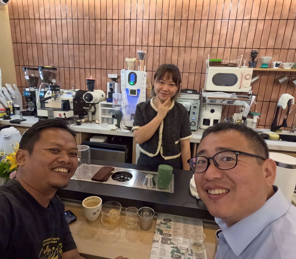 In Guiyang City, I visited several coffee shops. According to a flyer I found in one of the shops, there are approximately 3,000. One I visited was “San Men Coffee”, which I found through an online search, and fortunately, the owner was the barista. We chatted extensively about the coffee business in Guiyang and the characteristics of coffee drinkers here. IShe said that in hot weather like now, cold brew and coffee with milk are popular, and delivery or online orders usually outnumber in-store orders. The shop is small, measuring 2 x 5 meters, but it looks very busy. Several collections of coffee beans are displayed in front, some from Sumatra. Others come from South America and Africa. He said they can produce 150-300 cups a day. and offcourse I talk to her about our gibbon conservation coffee “Owa Coffee”.